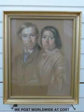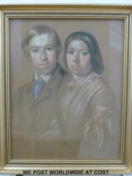 Gouache dated 1859 of a young couple, thought to be Dutch, indistinctly signed and dated lower right (30cm x 40cm)