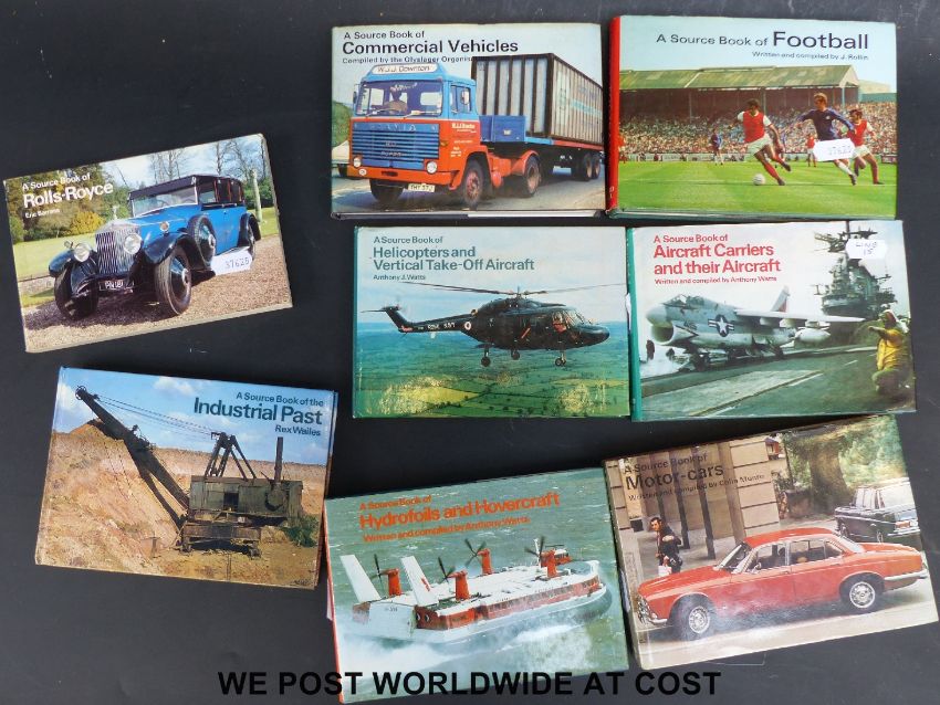 A collection of titles from the Source Book series (Ward Lock, c1970), titles include Locomotives, Motor-cars, Commercial Vehicles, Submarines and Submersibles, and Military Tracked Vehicles