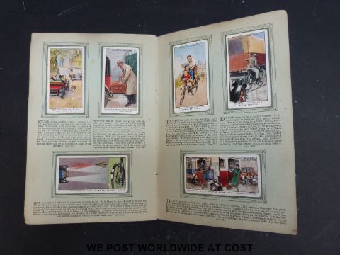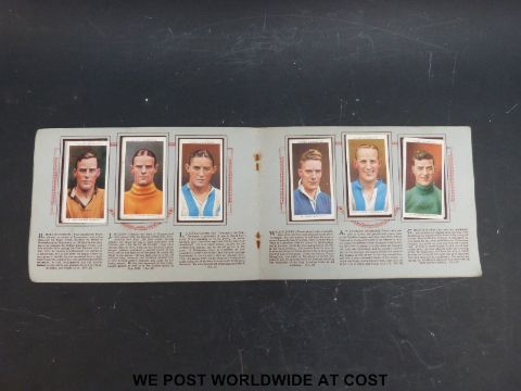 A collection of cigarette card albums including Godfrey Phillips aircraft, John Player aircraft, RAF badges and aircraft, naval craft, railway engines, hints on Association football etc