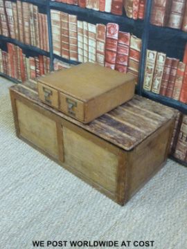 A pine storage box together with an oak filing box with two drawers (H32 x W78 x D40cm)