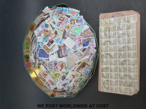 A substantial quantity of loose stamps in tins, packets etc together with loose album leaves