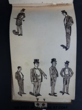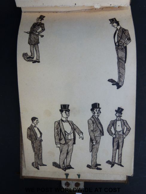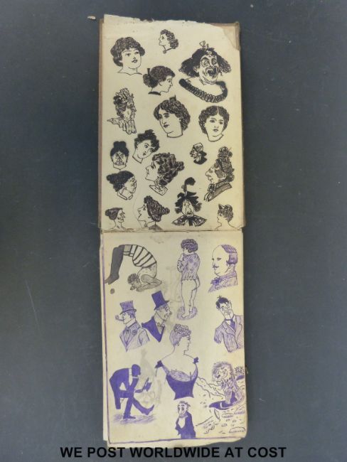 An early 20thC sketch book including ladies, cricketers, caricatures etc