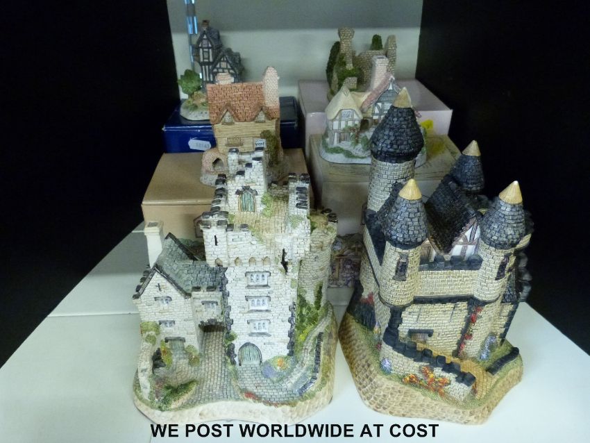 Four boxed David Winter cottages including Birthday Cottage, together with two large castles including O'Donovan's