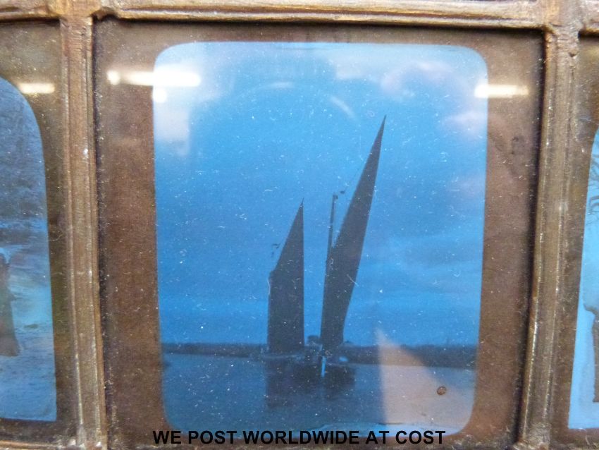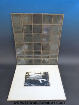 A leaded glass panel made up from photographic slides including country houses, Blackpool tower etc. together with a signed A E Elliot 'View of Great Yarmouth From the Marshes Before Recent War"