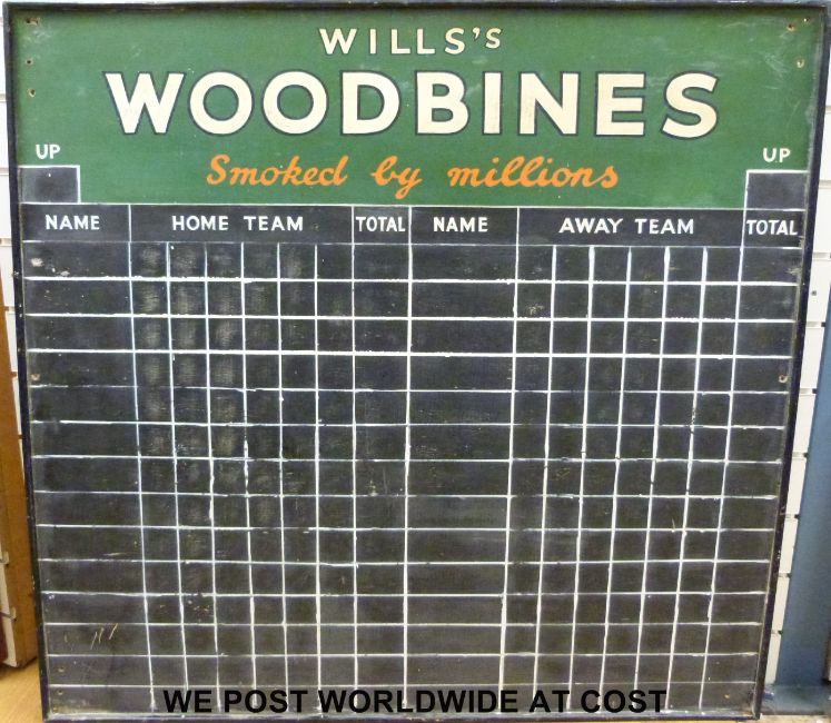 A Wills' Woodbines skittles scoreboard (104cm x 108cm)