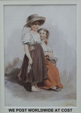 Paul Falconer Poole (1807-1879) watercolour of two young girls, monogrammed dated 1832 (17cm x 12cm)
