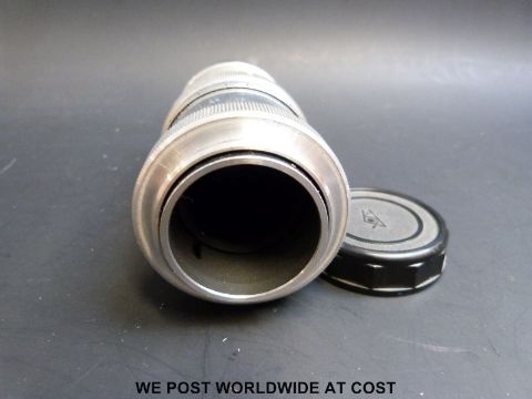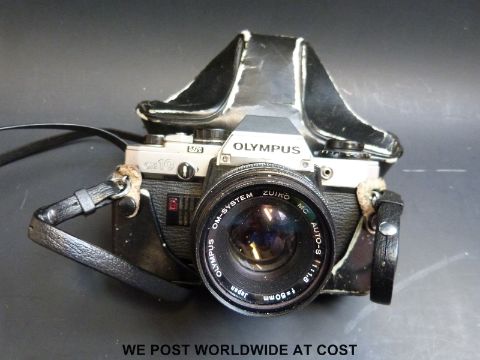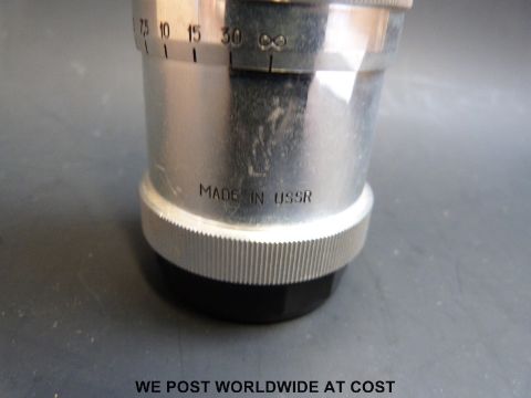 An Olympus OM10 SLR camera, Fed-4, Zorki -4 camera and a 135mm Russian screw type lens