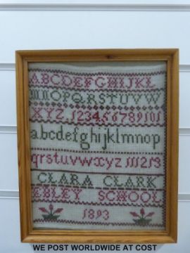 A Victorian sampler by Clara Clark 1893 Ebley School, Stroud, Gloucestershire