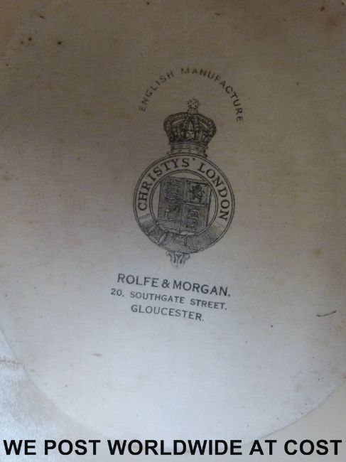 A top hat by Christys' London marked Rolfe & Morgan, 20 Southgate Street, Gloucester, in leather case