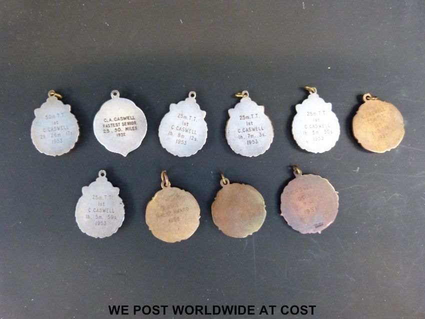A collection of Finsbury Park cycling time trial medals dated 1953 marked verso with time, date and name of the recipient
