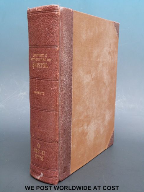 William Barrett, The History and Antiquities of the City of Bristol (Bristol, William Pine, 1789). Half leather boards, gilt lettering to the spine. All copper plate prints prints seemingly in tact