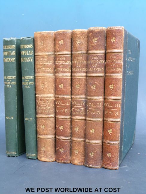 George Nicholson, The Illustrated Dictionary of Gardening: A Practical and Scientific Encyclopaedia of Horticulture (London, L Upcott Gill) five volumes, half leather and gilt boards with raised spine, together with A E Knight and Edward Step, Hutchinson's Popular Botany (London, Hutchinson & Co) with colour plates, green, gilt-decorated cloth