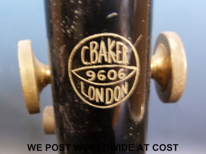 A Baker, London cased microscope together with a Binomax Beck binocular microscope