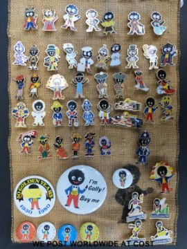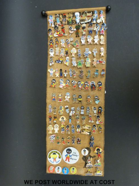 A large collection of enamel Golly badges to include footballers, spaceman, racing drivers, Barcelona '92 Olympic Gollies, darts and cricket playing Gollies
