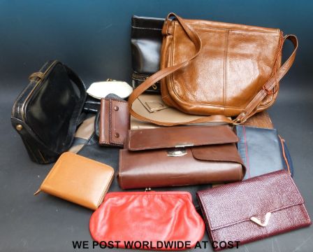 A collection of vintage hand bags and purses, including a gentleman's travelling bag