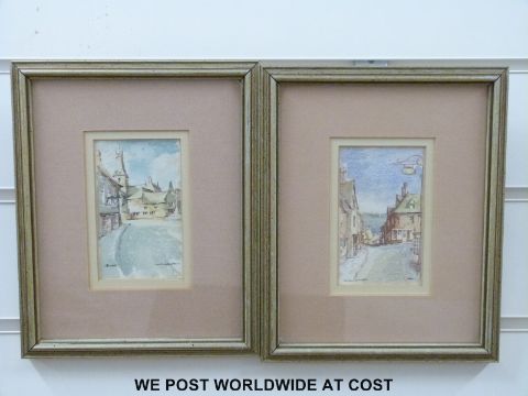 Terry Thomas pair of watercolours, 'North and South Minchinhampton High Street' (each 10cm x 6cm)
