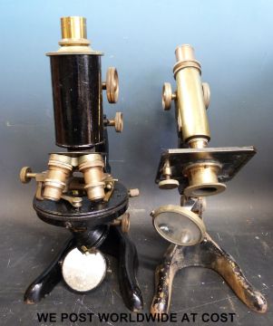 Two cased microscopes, various lenses etc