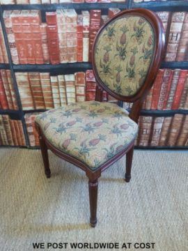 A set of fifteen upholstered dining chairs raised on tapering reeded legs