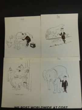 Eight original animal cartoons, mostly signed Lewis Williams (each approx 25x18cm)