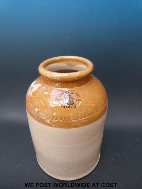 A stone cider jar, Pickup and Co, Bristol dated 1934, together with a stone pot Ferris & Co, Bristol