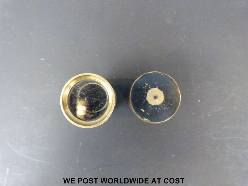 An early brass pocket field microscope together with a small brass field telescope of similar era