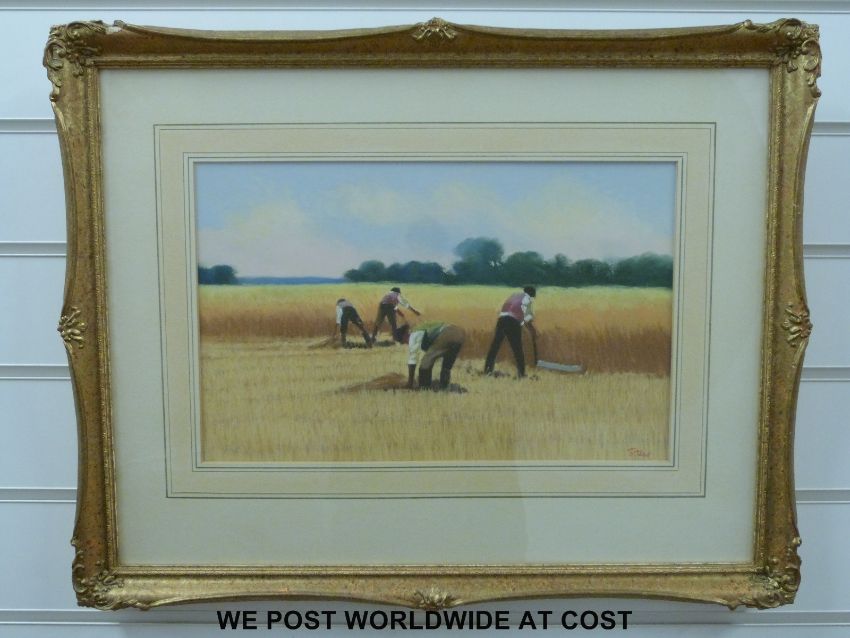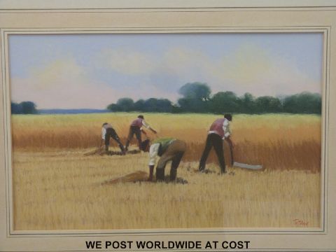 Tytler pastel of farmers cutting hay in a field, signed lower right, in ornate gilt frame (23 x 36cm)