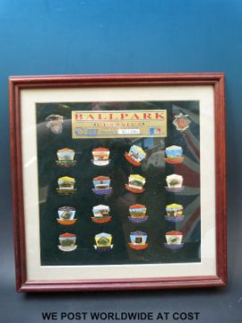 A framed Ballpark Classics limited edition (762/1000) pin collection of baseball interest