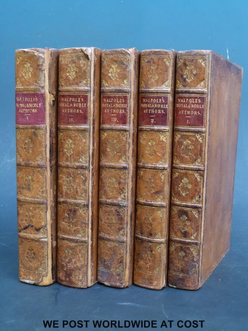 Horatio Walpole, A catalogue of the Royal and Noble Authors of England, Scotland and Ireland (London, John Scott, 1806) full leather boards, gilt spine. Five volumes