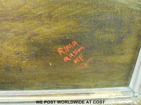 Norman Henry French (1906-1984) oil on canvas, children playing by a cottage with coastal village in the background. Signed bottom right Rima RRSM NF in ornate gilt frame (60cm x 90cm)