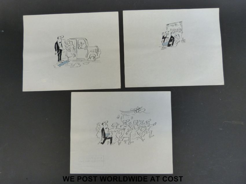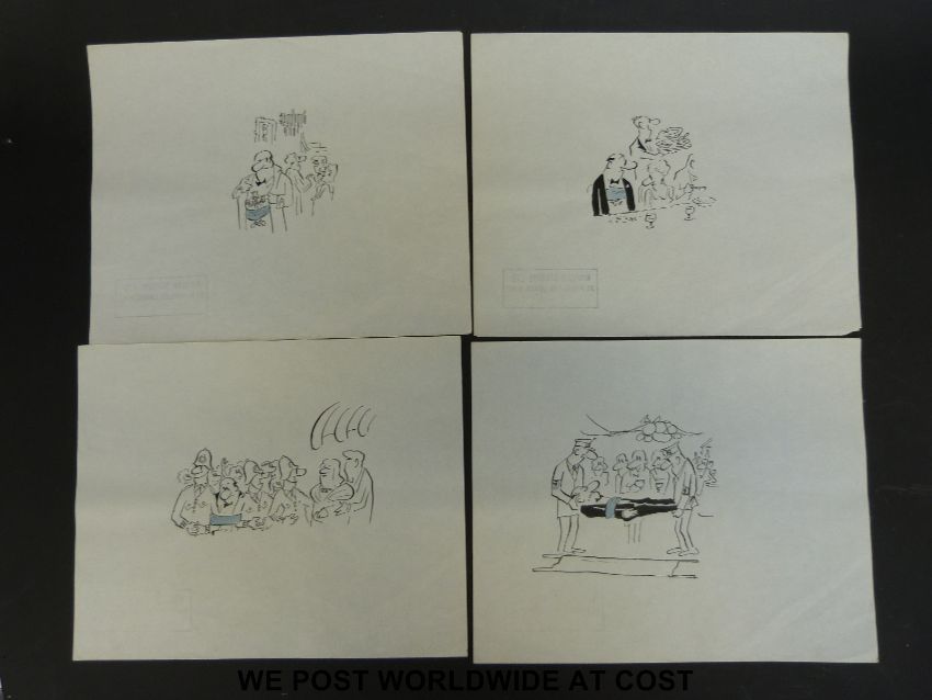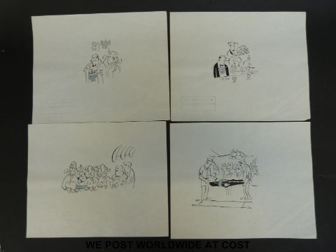 Seven original possibly Larry (unsigned) cartoons with a cummerbund theme (each approx 20x25cm)