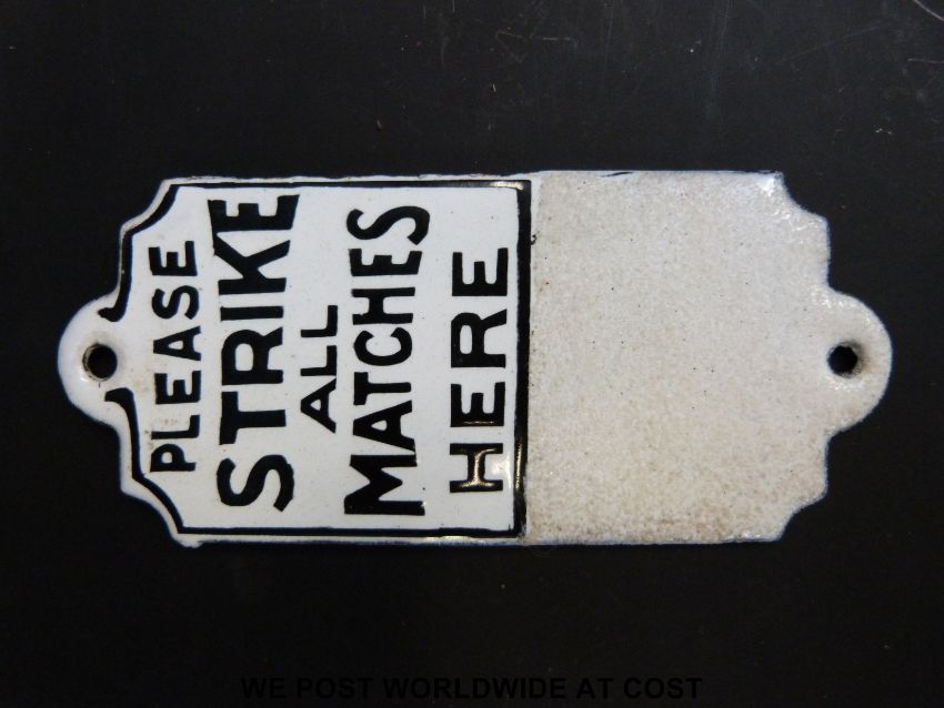 A Flower of Cuba cigars match striker together with a further wall mounted match striker