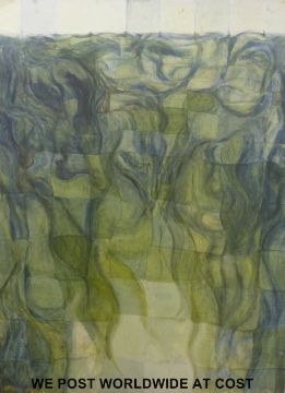 A retro abstract oil on board possibly nudes / mermaids under the sea, dated / numbered 74 verso (122cm x 92cm)