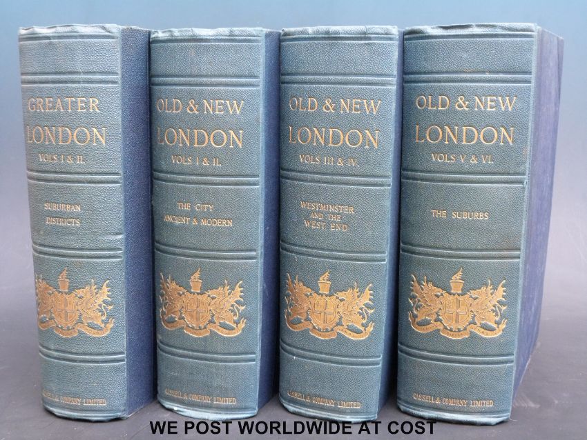 Walker Thornbury & Edward Walford, 'Old & New London (London, Cassell, 1892) blue leather & cloth Vols: 1-2: 'The City Ancient & Modern; Vols 3-4: Westminster and the West End; Vols 5-6: The Suburbs, Plus Greater London, Vols 1-2: Suburban Districts