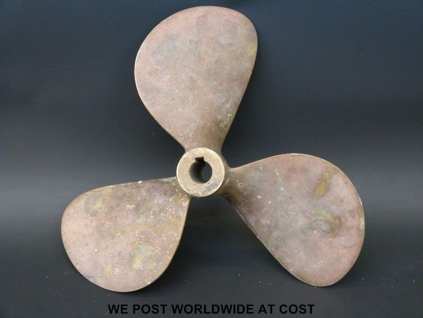 A bronze 15 x 15 inch boat propeller