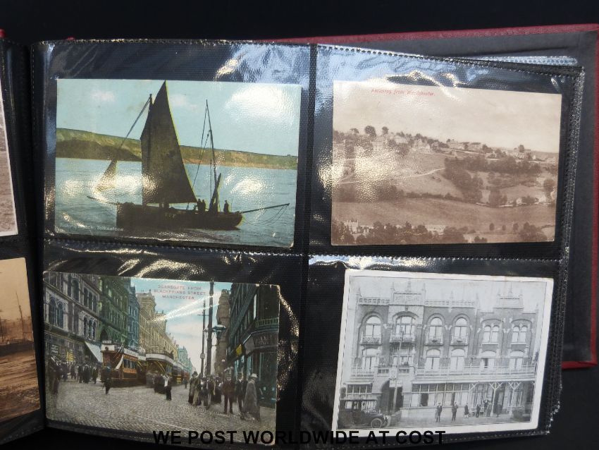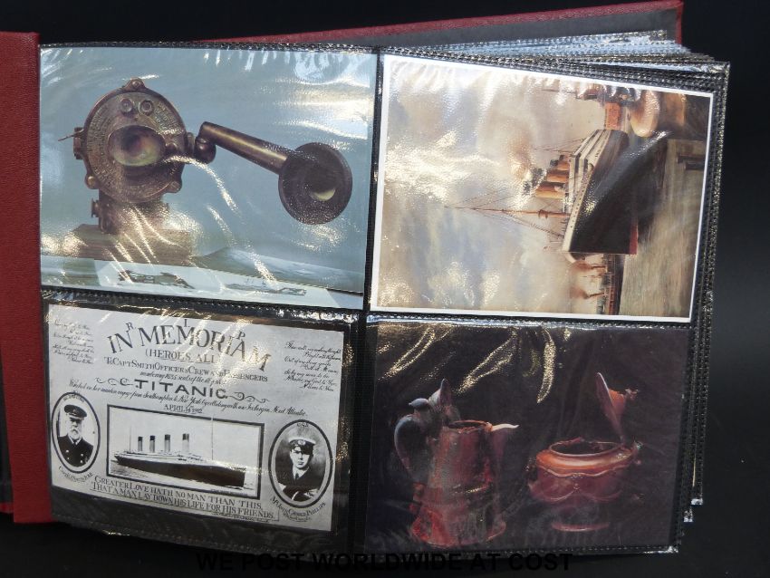 An album of postcards to include Titanic, WWII, UK topographical, further shipping including Cunard, Amberley from Woodchester and other local interest, disasters etc