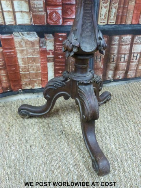 A carved Victorian tripod table (H75 x Diameter 52cm)