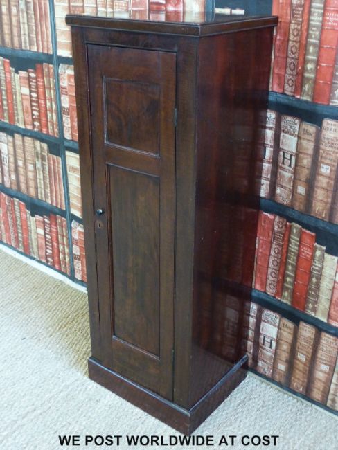 A Georgian mahogany gun or similar tall cabinet with shelving inside (H118 x W43 x D35cm)