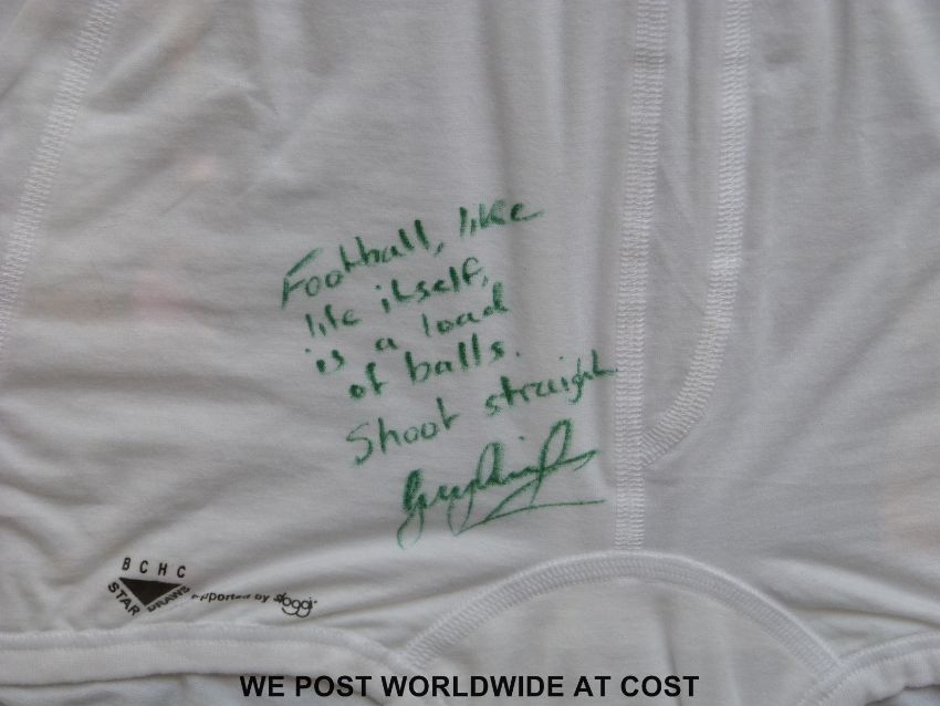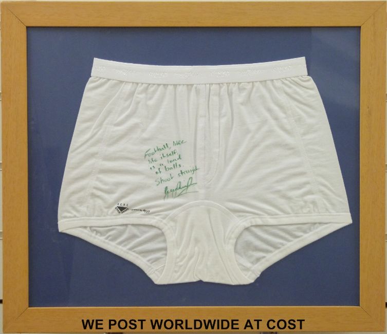 A pair of Gary Lineker signed underpants, framed and glazed