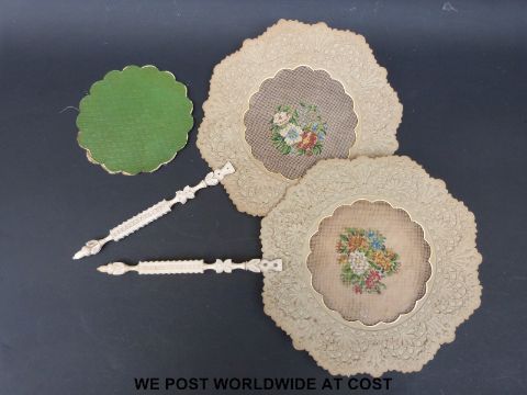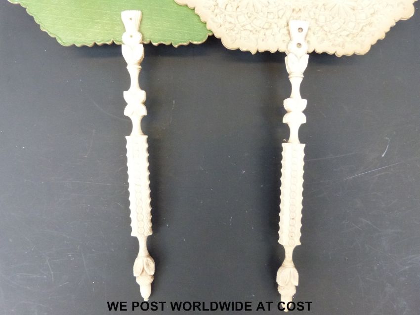 A pair of ivory handled pressed paper face screens