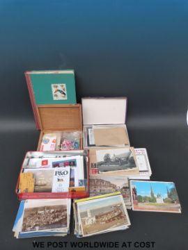 A box of loose stamps, covers, sponsored booklets, postcards and a stockbook of GB stamps
