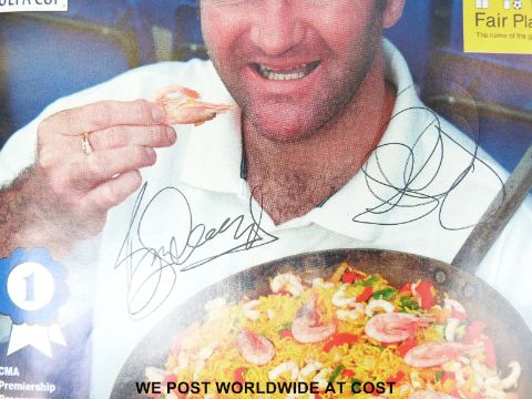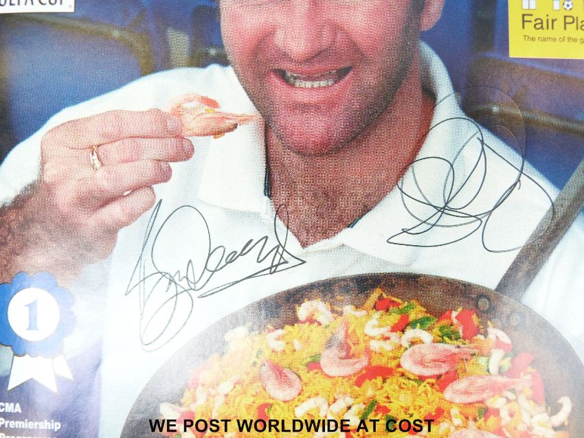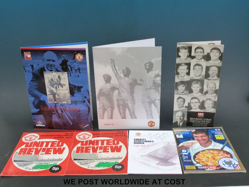 A large collection of predominantly Manchester United football autographs. Forty signatures in total, including the 1968 European Champions Bobby Charlton, Nobby Stiles, George Best, John Aston, Bill Foulkes, Tony Dunne, David Sadler, Jimmy Ryan and nine others on 1993 Gala Dinner Dance programme. All others signed on various programmes and menus