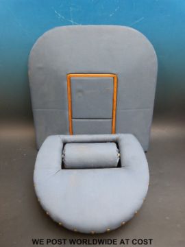 A large collection of lace-making equipment including stand, pillow, bobbins etc