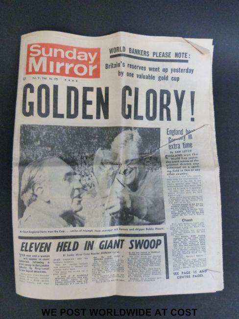 A 1966 World Cup programme together with a World Cup 1966 LP of interviews and recordings of the finals, extra time semi-finals and quarter-finals and an LP of highlights from 21 years of BBC's Sports Report