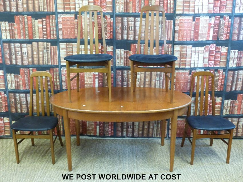 A retro teak table and four chairs with integral extra leaves (H73 x W164 x D90cm)