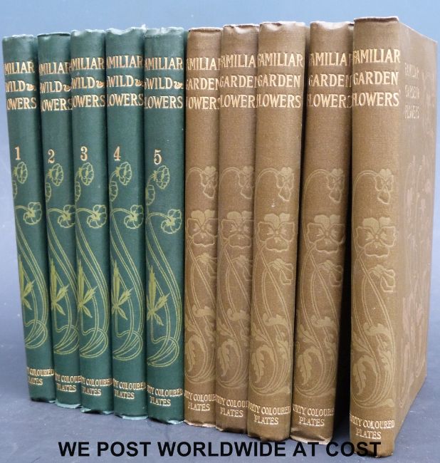 F Edward Hulme, Familiar Wild Flowers (London, Cassell), with coloured plates. Green and gilt illustrated cloth, five volumes, together with F Edward Hulme, Familiar Garden Flowers (London, Cassell) with coloured plates, brown and gilt illustrated cloth, five volumes, all first series