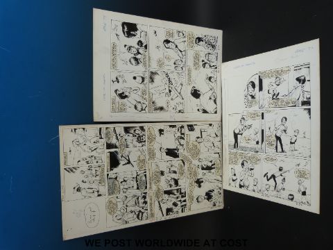 Leslie Crowther three black & white original art pages by artist Tom Kerr