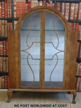 An Art Deco burr walnut style display cabinet (H150 x W102 x D34cm)