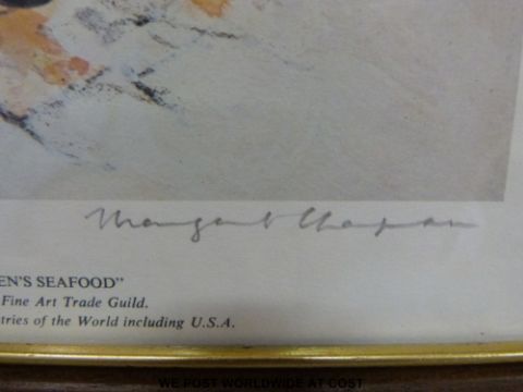 Margaret Chapman set of three signed prints "The Stallholders" (each 30x33cm) together with a book by the artist