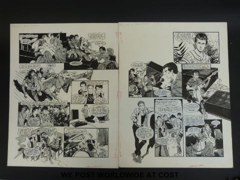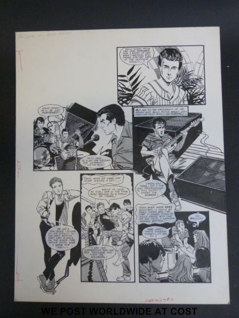 Midge Ure and Silk original black & white pen artwork by Alan Parry