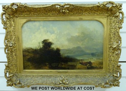 John Wright Oakes (1820-1887) oil on panel Benan Loch Katrine, signed and dated 1851 lower right, inscribed verso with title, in ornate gilt frame (33 x 53cm)